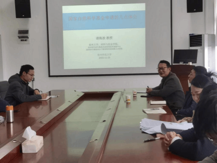 为进一步做好我院国家自然科学基金项目申报工作,提高科研人员对基金申报的重视程度,促进学院高质量发展,2025年11月19日下午,应我院邀请,贵州大学谢海波教授以“国家自然科学基金申请的几点体会”为题,在我院三楼会议室作了关于国家自然科学基金项目申报的专题讲座。讲座由副院长裴响林主持,学院具有博士学位的教师及有意申报2026年国基项目的老师参加。